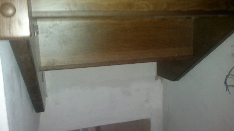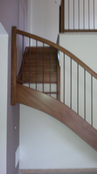 Ringhiera con corrimano in legno di faggio a settori, colonne verticali in ferro diam. mm. 20.