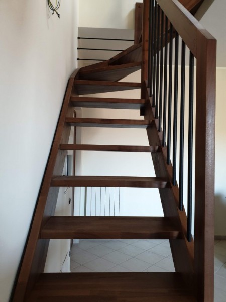 Scala a giorno mod. “Frenze” con doppia struttura in legno a fascione, eseguita in legno di