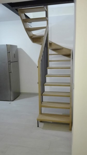 Scala composta da n.° 9 gradini retti, n.° 6 gradini a  ventaglio a 30°; ringhiera supplementare su